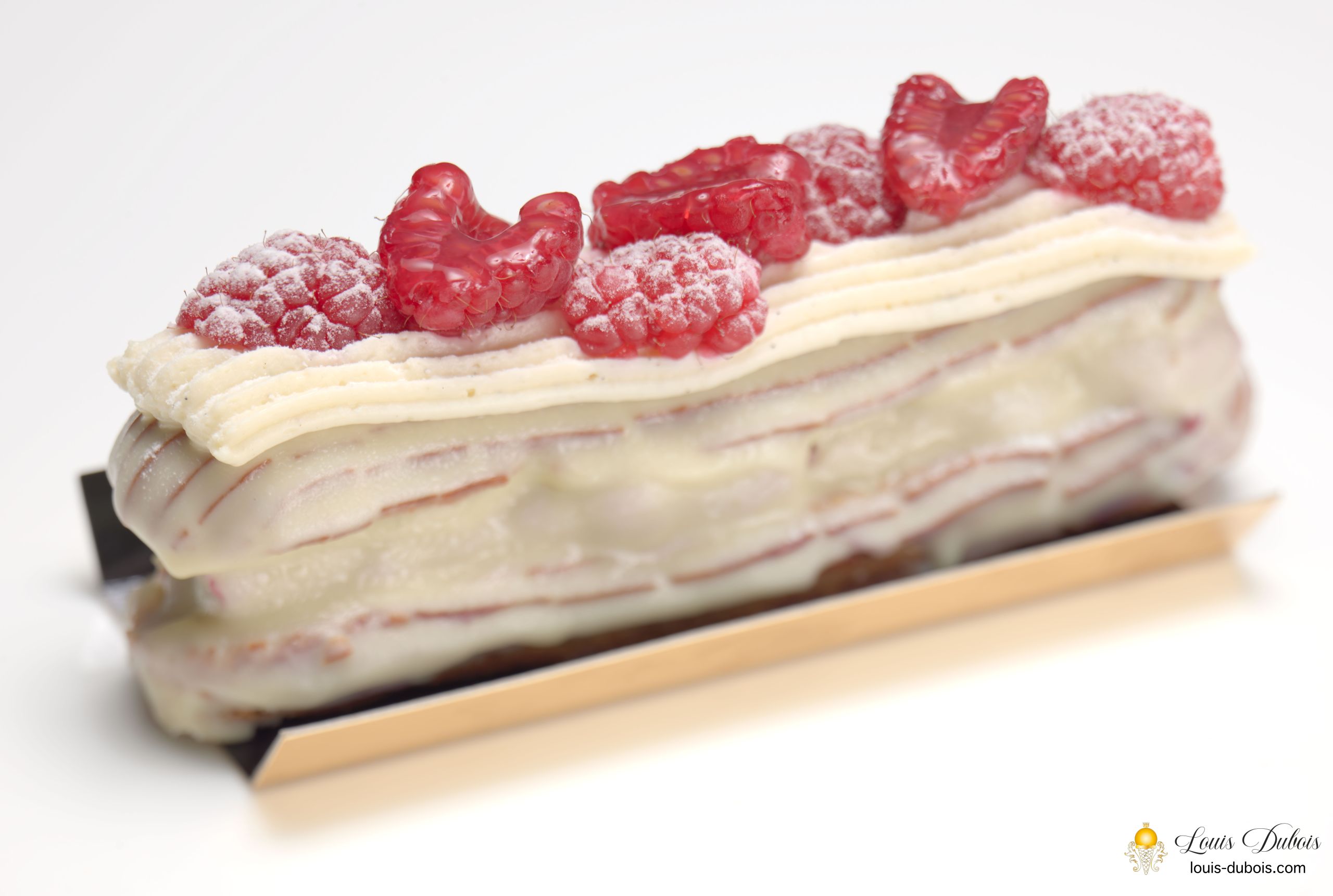 Pâte à Choux crémeux framboise, confit de Framboise du Chef, fine coque de chocolat Blanc