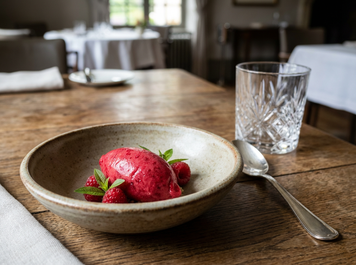 Fruit sombre et puissant, acidité noble, texture soyeuse. Un sorbet ample, profond, d’une grande intensité.